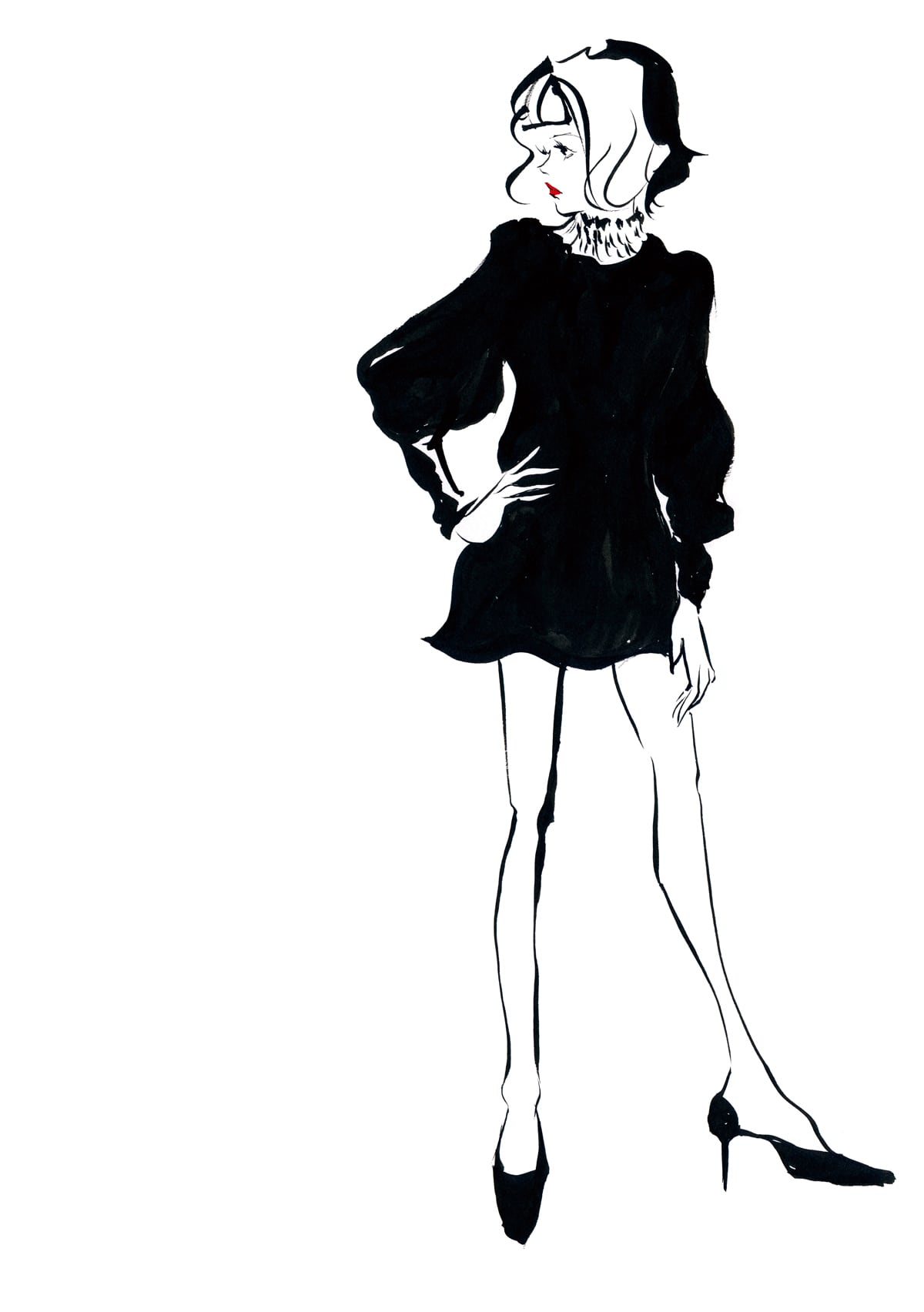 赤をテーマに人物や猫の絵を描きました。
