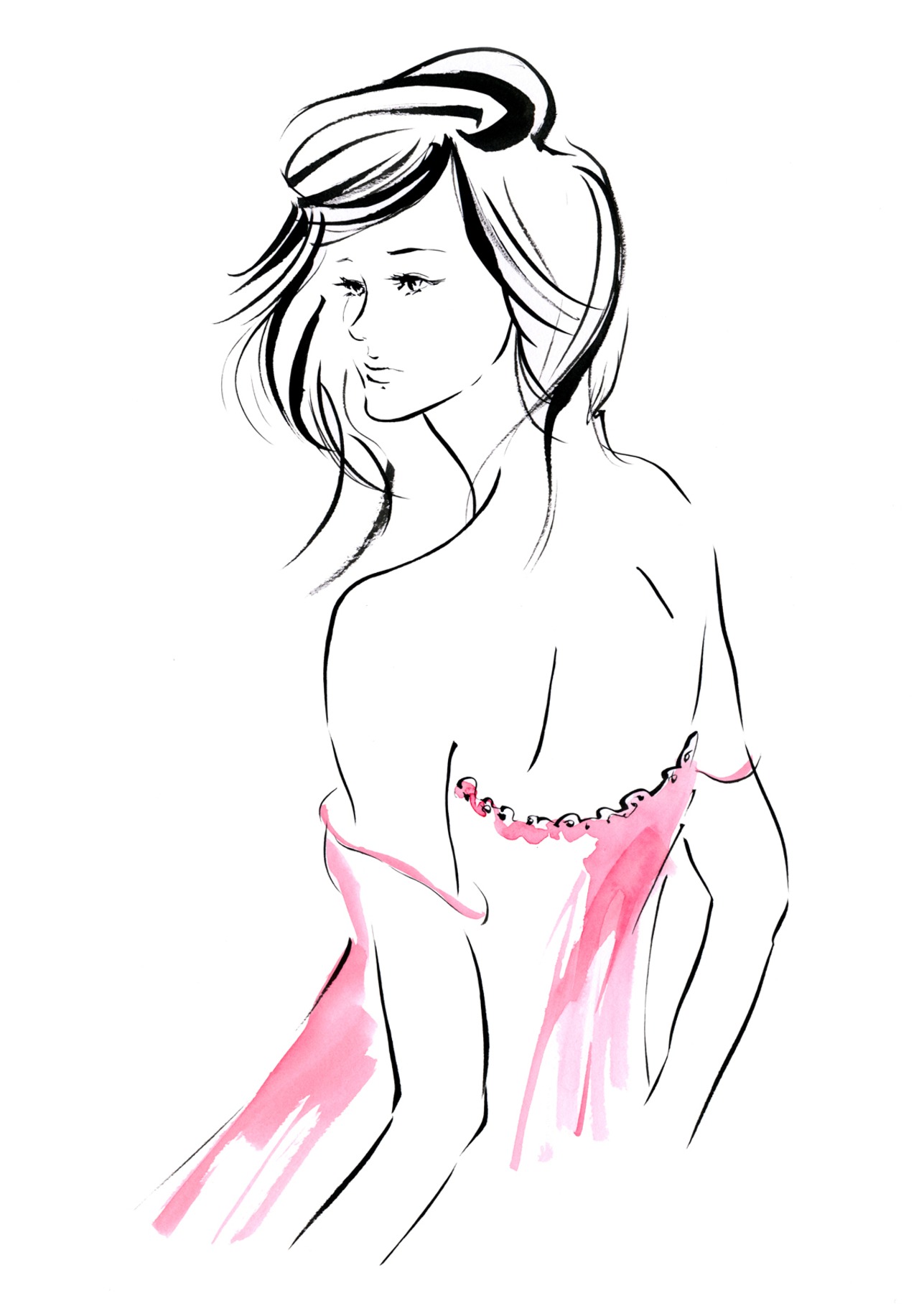 赤をテーマに人物や猫の絵を描きました。